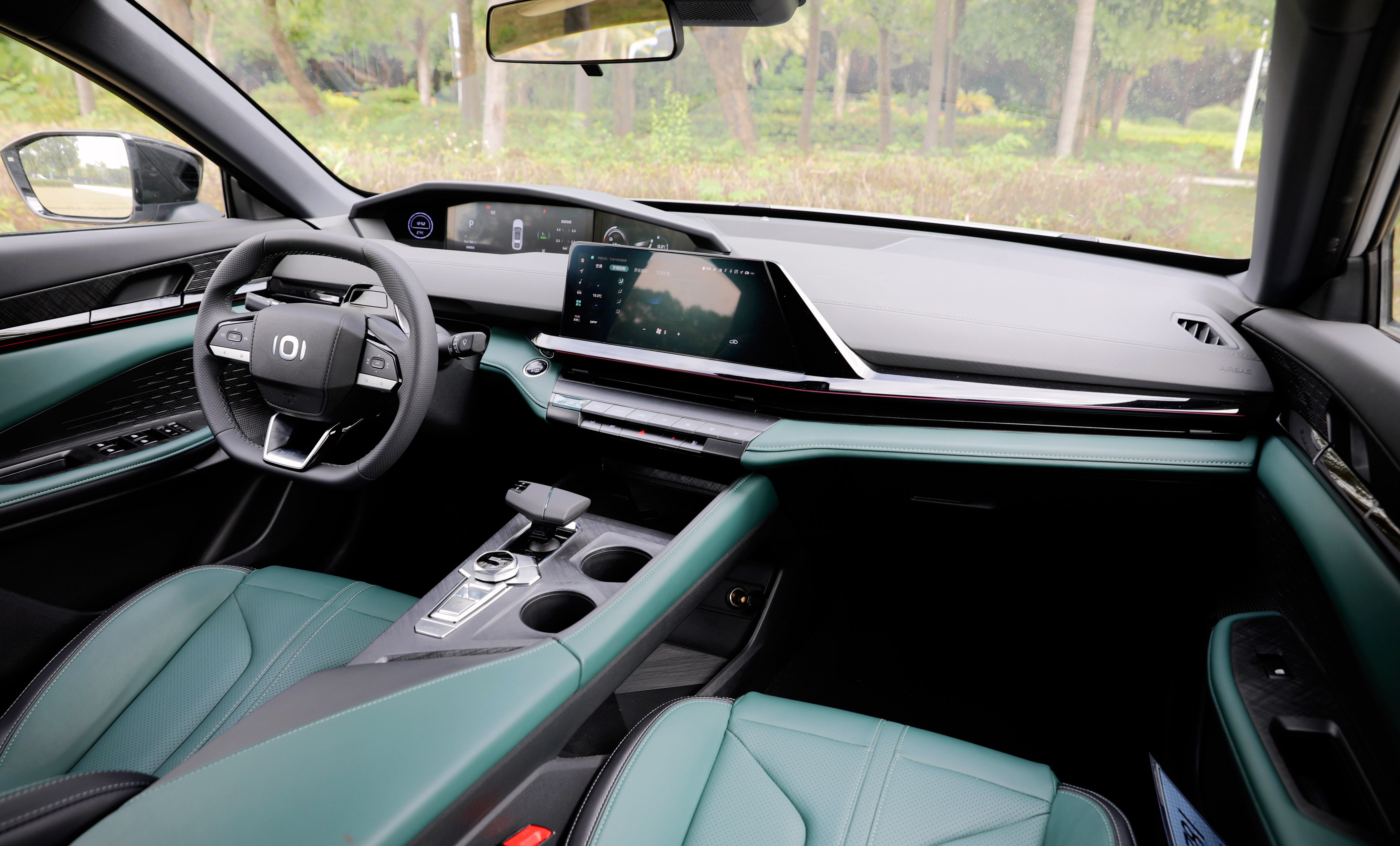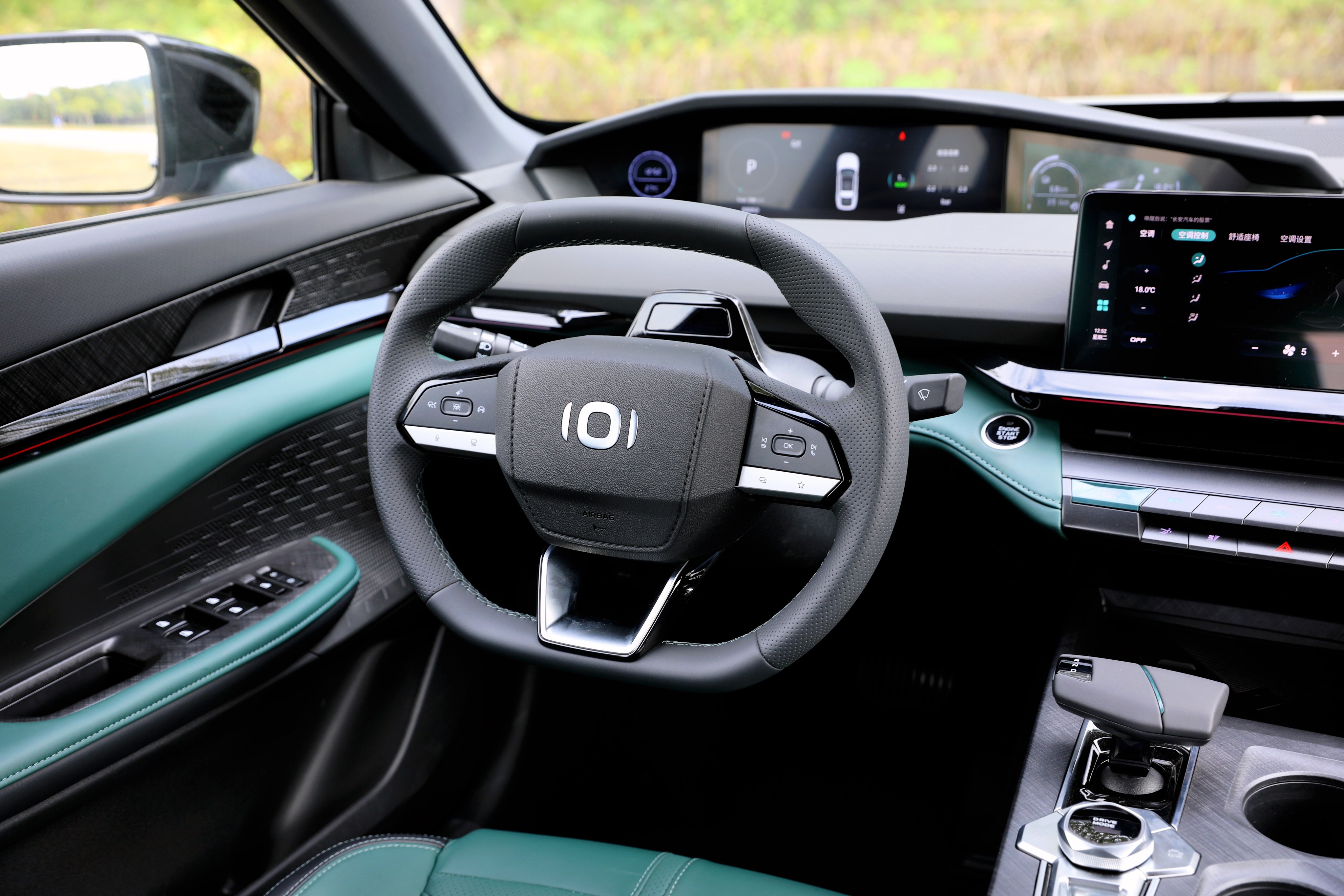 進入車內(nèi),長安啟源A06座艙風格很獨特,富有層次感的造型讓你第一眼會感覺很復雜,但是仔細品味一番后,它特殊的風格可以說是別有一番風味。啟源A06提供流沙白和林蹤綠兩種面料配色,個人更喜歡林蹤綠的配色方案,更能體現(xiàn)出動感、時尚的一面。