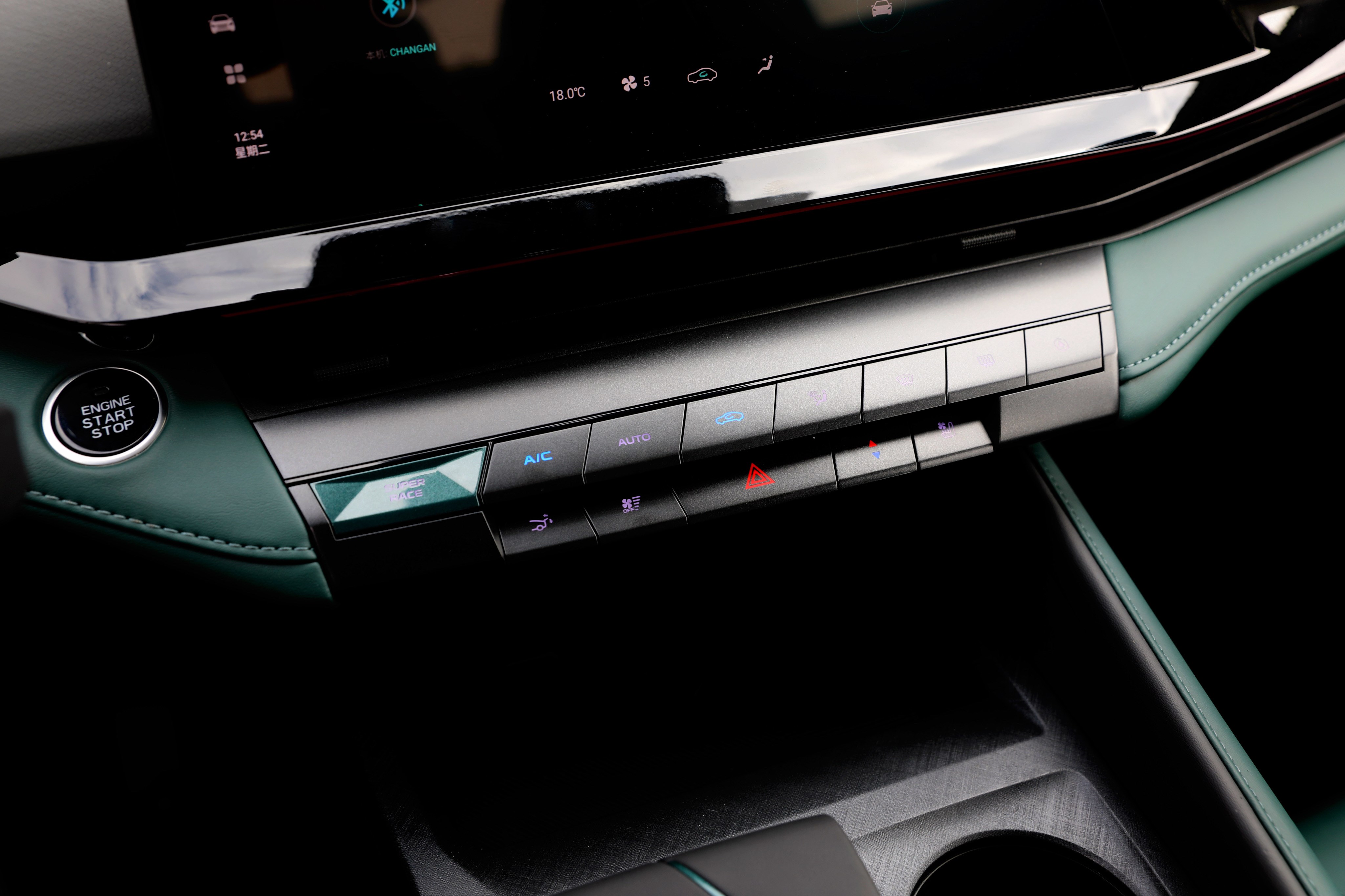電子擋桿也被設(shè)計成飛船的操作桿模樣,中控臺下方保留酷似鋼琴按鍵的實體按鈕,尤其是打開電動尾翼和進入SUPER RACE場景模式兩個按鍵,應該是車主們最常用的按鍵吧。