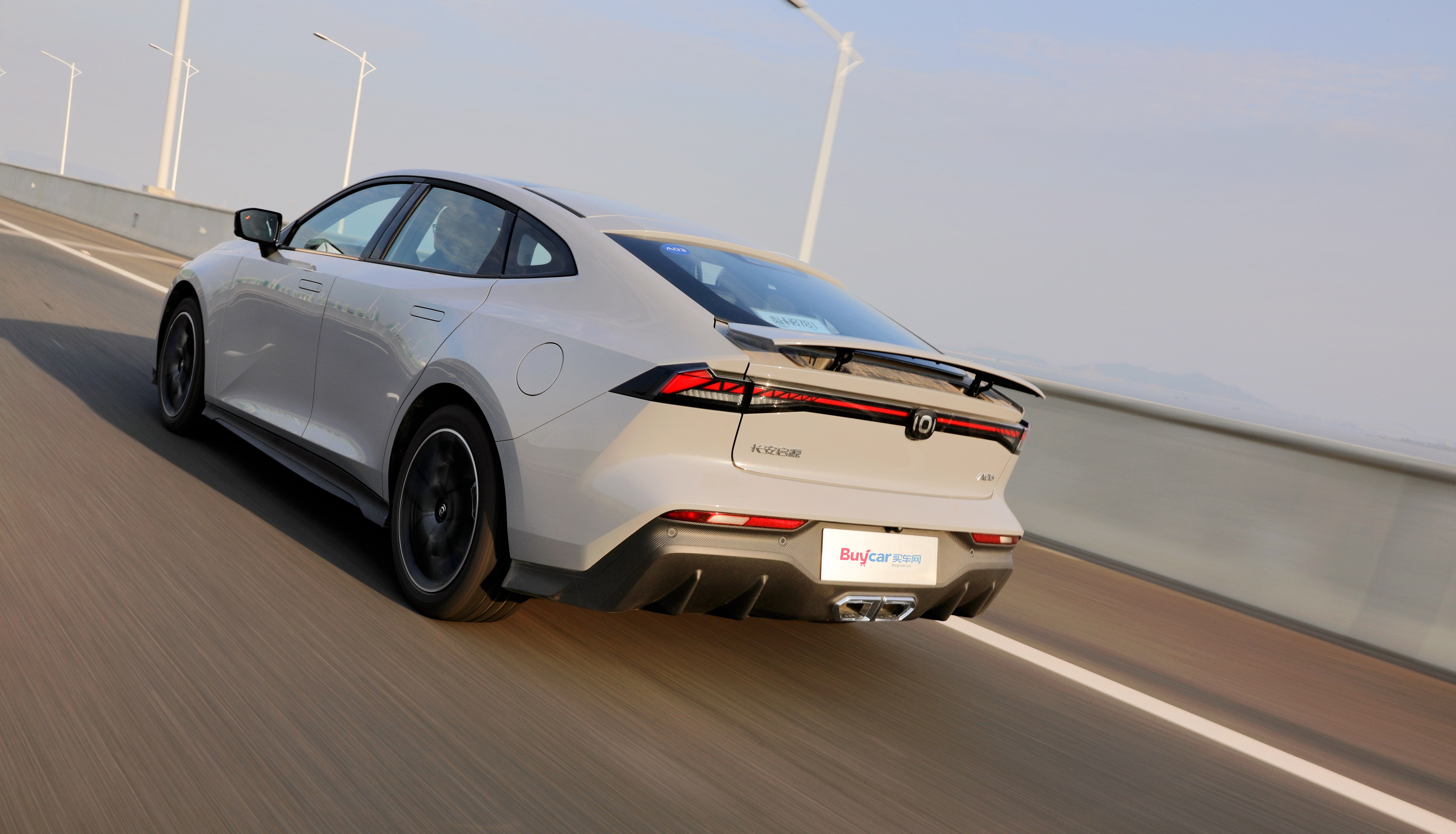 車尾配備貫穿式LED尾燈、空氣擴散套件以及中出雙排尾喉,可電動升降的尾翼絕對算是加分項,它不僅能夠幫助啟源A06呈現(xiàn)更戰(zhàn)斗姿態(tài),并且在行駛途中可為車輛提供最高25kg的下壓力,增加高速行駛時的車身穩(wěn)定性。